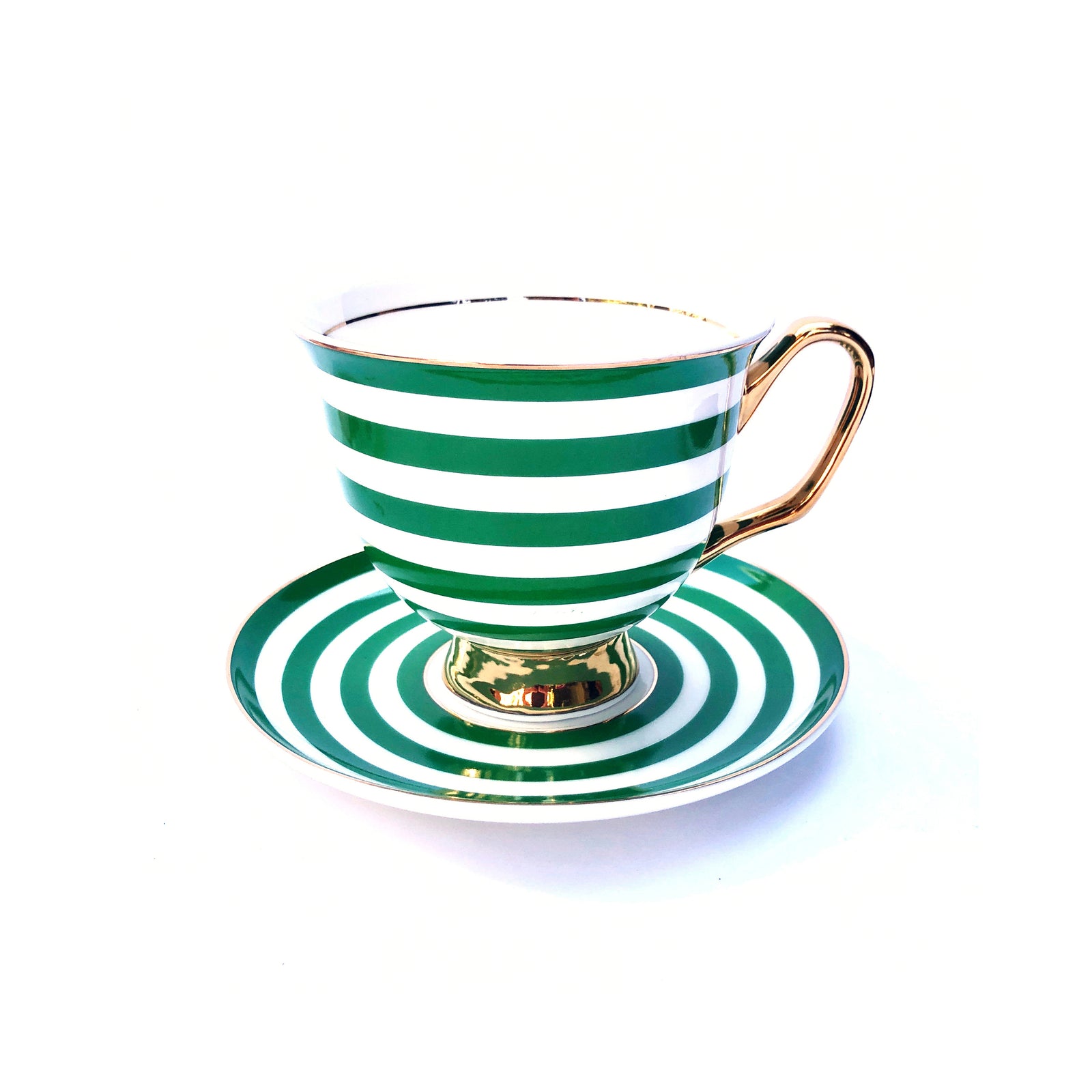 XL Green Stripe Teacup and Saucer